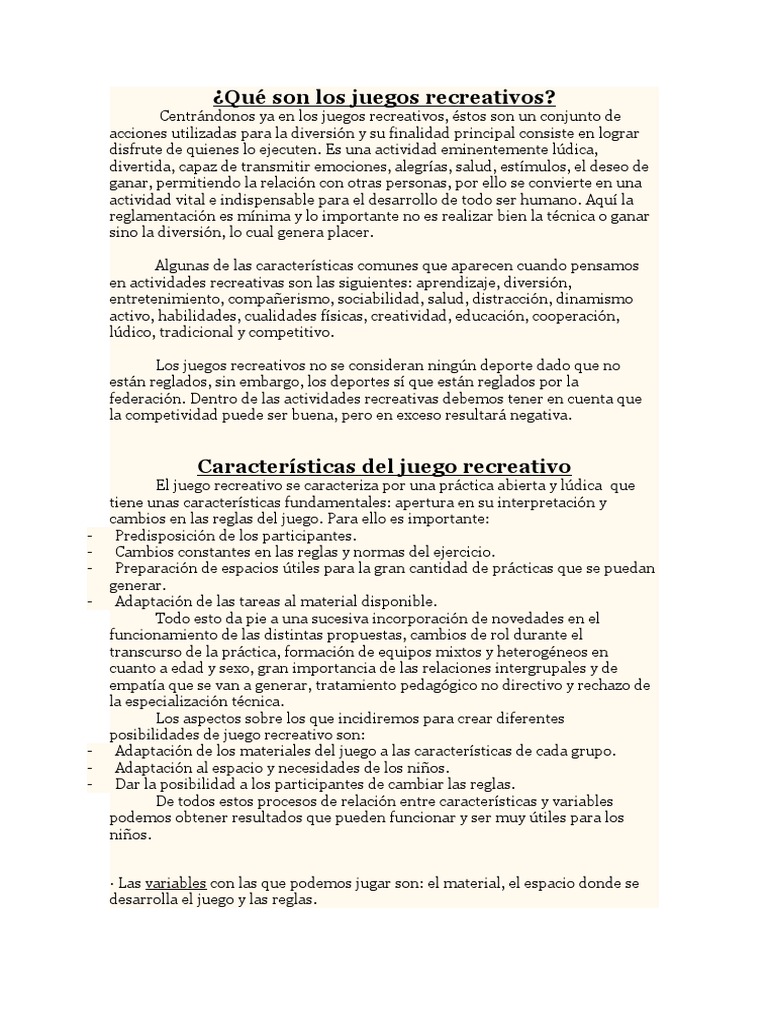 Juego Recreativo Con Reglas - Casino Recreativo Ocio Actividades De Ocio. En resumen, el juego recreativo se. Descripción del programa de juego físico recreativo y los pasos metodológico. También puede suceder que un hardware concreto no rinda tan bien como parecía con un título concreto. Se forman grupos de 6 alumnos. Gana el equipo que al finalizar el juego tenga más puntos.